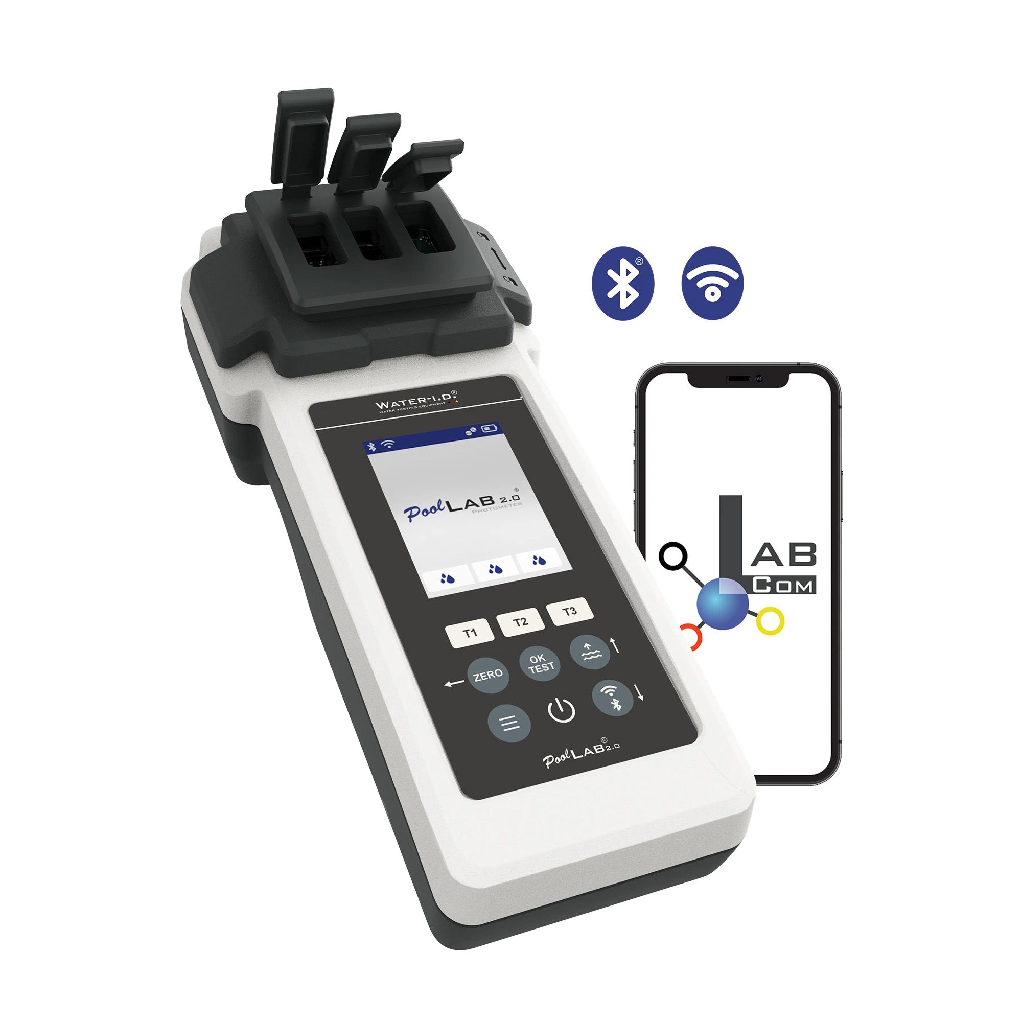 Met ingebouwde Bluetooth® en WiFi maakt het verbinding met de gratis LabCom® software, app en cloud. Gebruikers kunnen testresultaten koppelen aan meetbronaccounts, rapporten afdrukken, het chloorgehalte berekenen en doseringsadviezen ontvangen. Ook de LSI-index wordt berekend via de software en app.